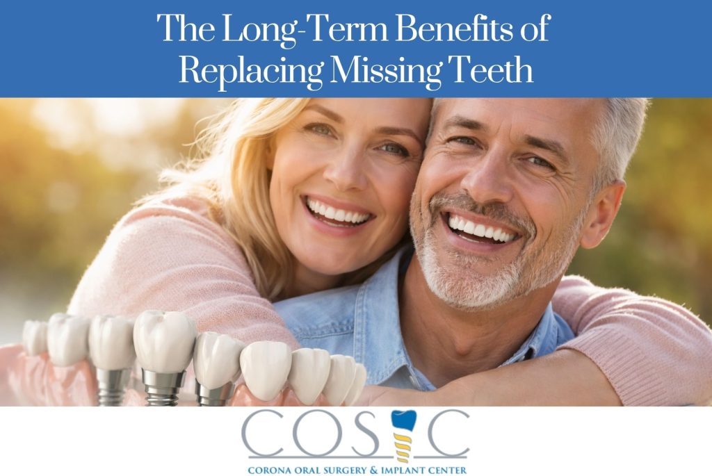 Missing teeth are more than just a cosmetic concern—they can significantly impact your oral health, overall well-being, and quality of life. At Corona Oral Surgery and Implant Center, we understand how important a complete, healthy smile is. Replacing missing teeth is not only about restoring appearance; it’s about protecting your long-term health.